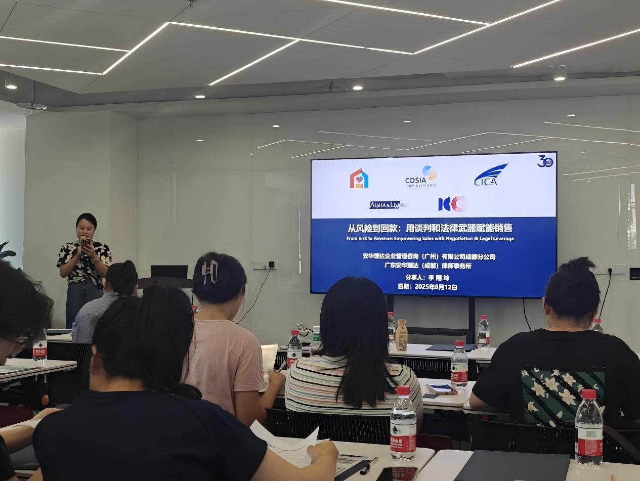 2025年8月12日,依托“蓉会共享家”平台,由成都市集成电路行业协会与成都市软件行业协会、安华理达、成都国家“芯火”双创基地联合举办“信用赋能专家揭秘——从风险到回款:用谈判和法律武器赋能销售”信用管理沙龙活动,在成都AI创新中心圆满举行。作为“蓉会共享家”本年打造为“企业风控赋能系列”活动,本次沙龙充分发挥“蓉会共享家”资源整合、精准对接的平台优势,吸引了多家集成电路、软件企业的法务、财务等人员积极参会。