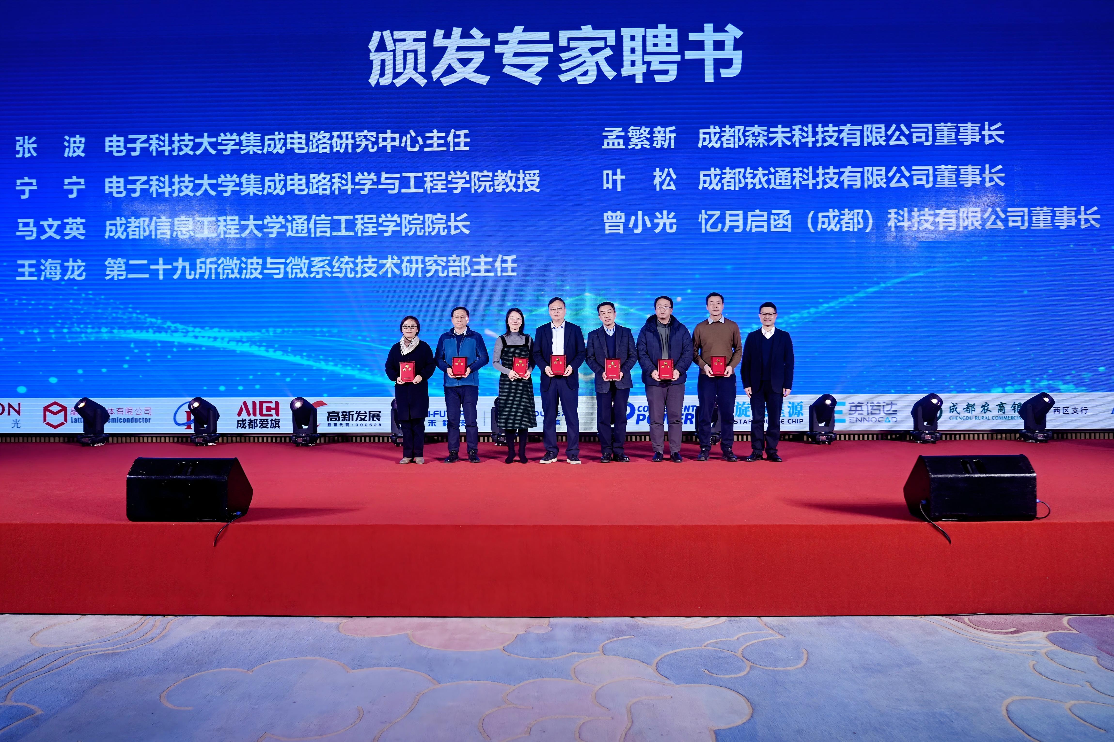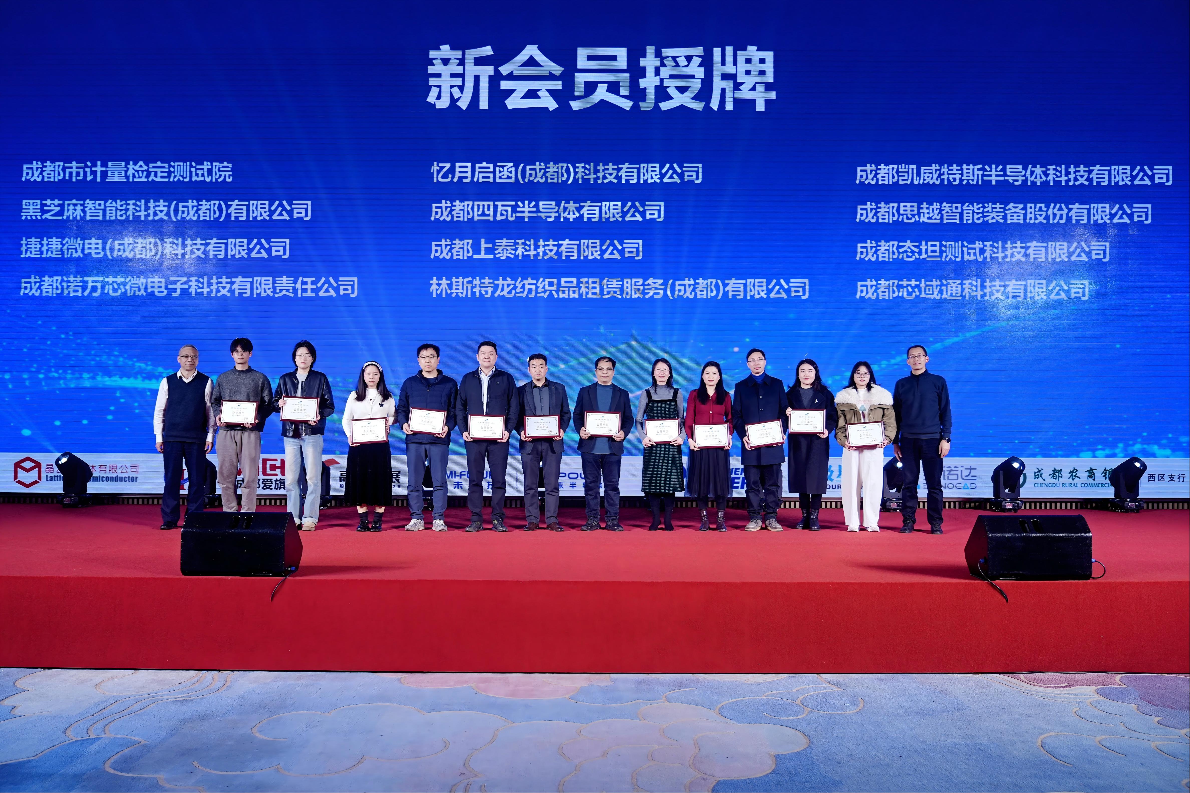 行业的精进离不开专家的智慧领航,产业的壮大更离不开新伙伴的鼎力加盟。大会还举行了专家聘任与会员授牌仪式。成都市集成电路行业协会会长周志为协会入库专家代表颁发了聘书,进一步壮大了协会智库力量;协会副会长成都海光集成电路设计有限公司高级副总裁刘新春、成都振芯科技股份有限公司总经理杨国勇分别为新加入的会员单位授牌,标志着产业生态朋友圈的持续扩大。