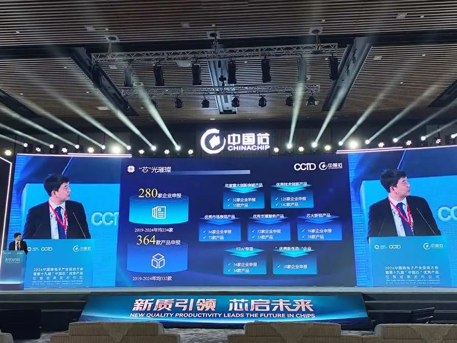 11月7日,2024中国微电子产业促进大会暨第十九届“中国芯“优秀产品征集结果发布仪式举行。本届”中国芯”优秀产品评选共征集到来自280家芯片企业,累计364款芯片产品的报名材料,获奖企业总数113家。