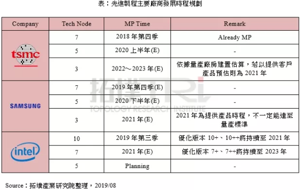 在光刻机符合量产规划的需求下,台积电、Samsung与Intel在先进制程的时程规划上也将更为激烈,无一不期望在竞争关系中胜出。