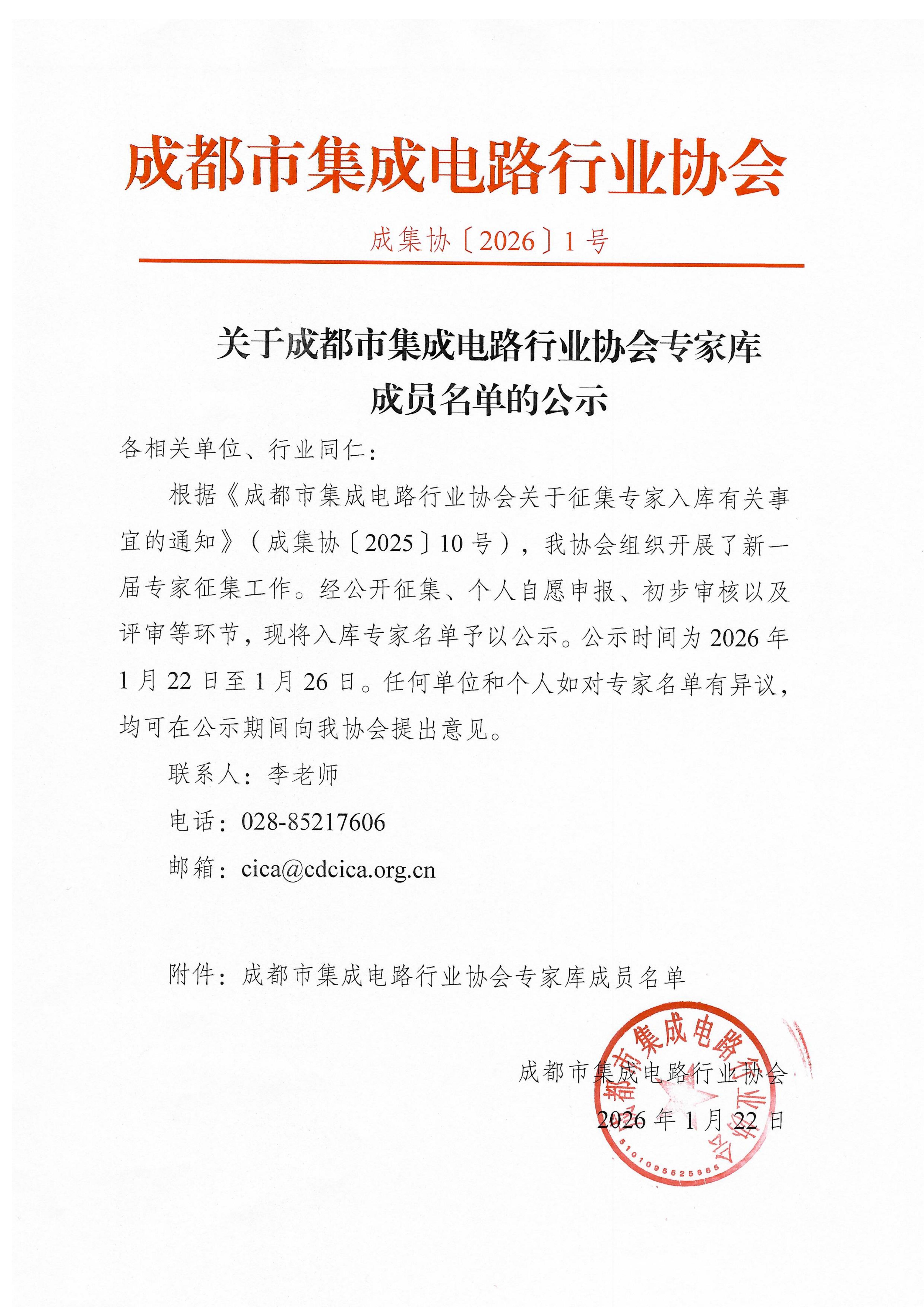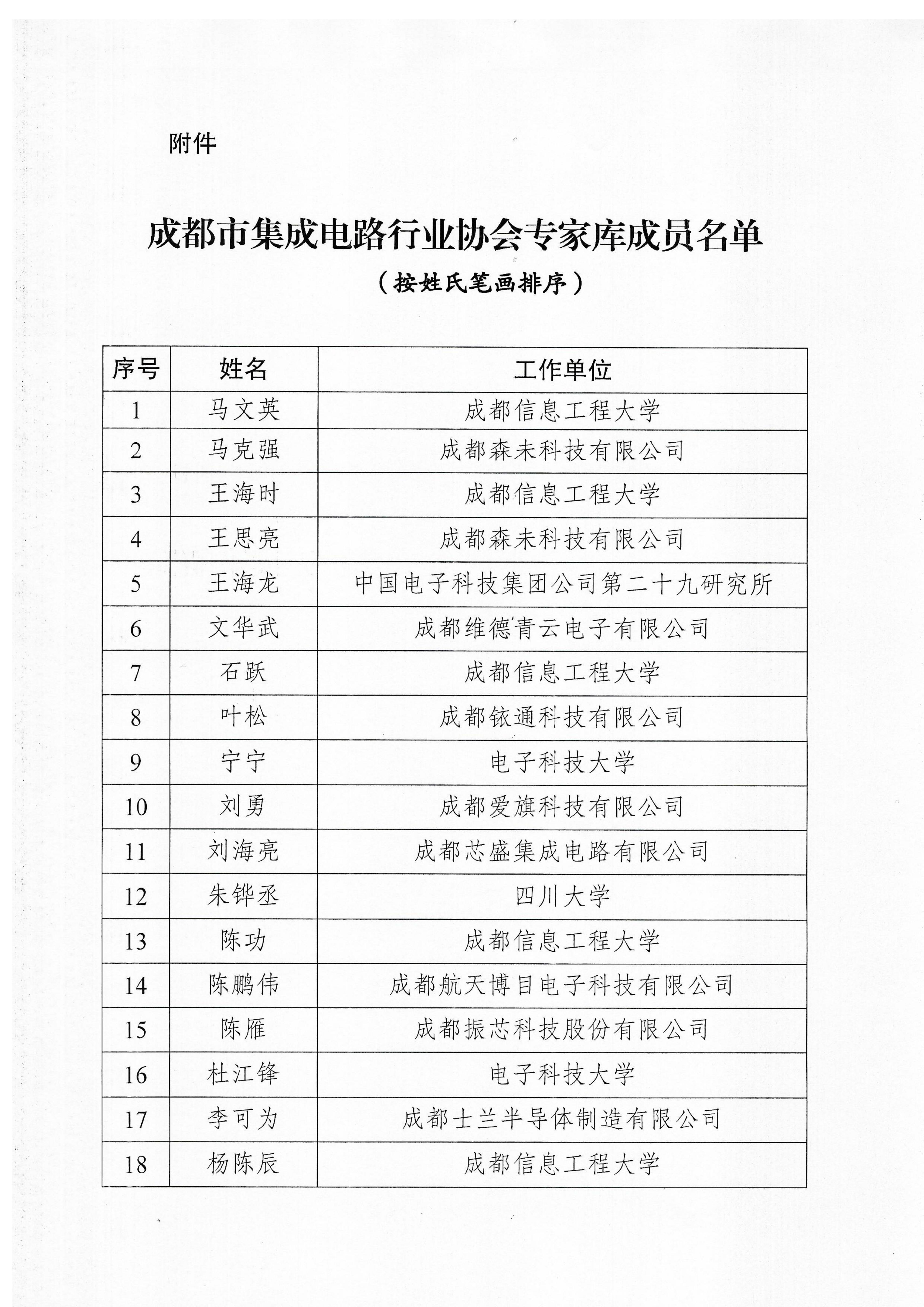 关于成都市集成电路行业协会专家库成员名单的公示