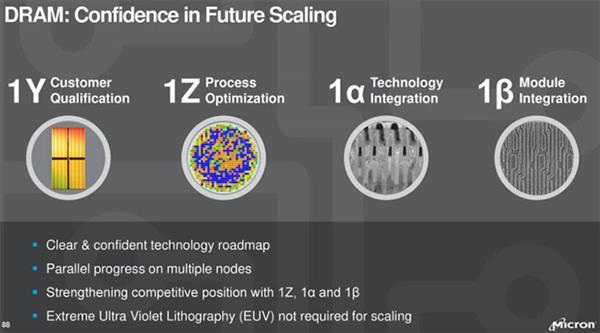 根据美光之前公布的路线图,实际上1Znm之后还会有1αnm、1βnm、1γnm,这样一来10nm级别就有六种制造工艺了,现在正好演进到到了第三代。