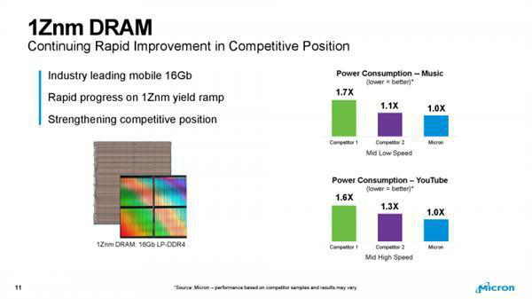 此外,美光还宣布批量出货基于UFS多芯片封装uMCP的、业界容量最高的16Gb LPDDR4X内存,满足了业界对低功耗及更小封装的的要求。