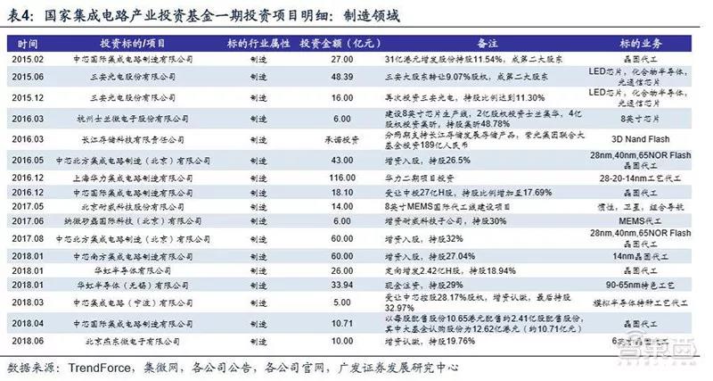 一期投资的重点在制造,投资分布为:制造67%、设计17%、封测10%、装备材料类6%。