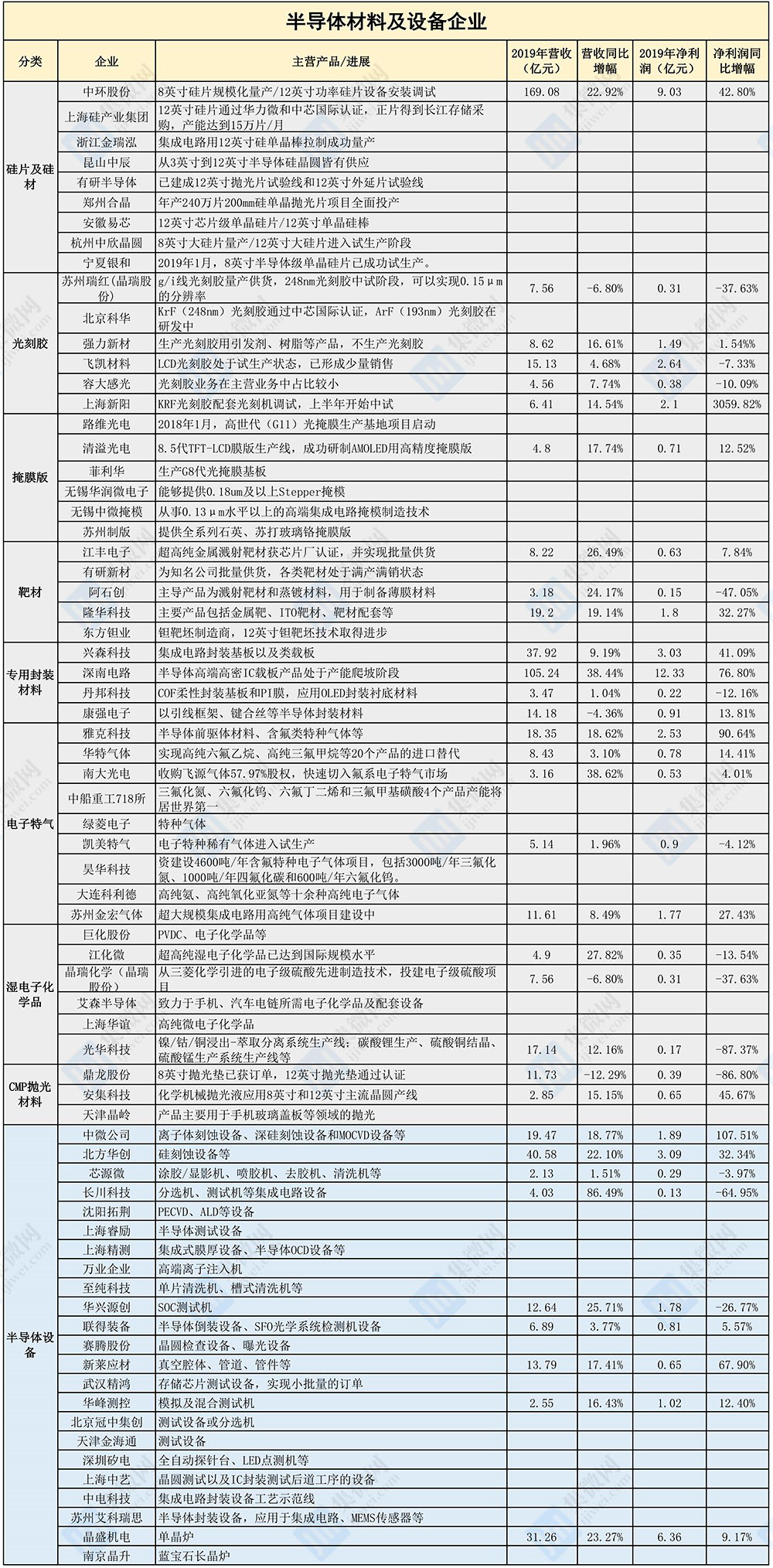 以下是集微网根据财报和公开资料不完全统计的半导体材料以及设备企业名单: