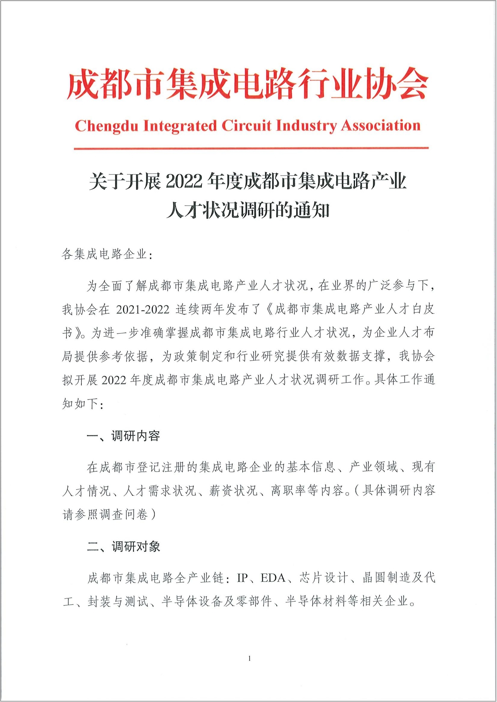 关于开展2022年度成都市集成电路产业人才状况调研的通知