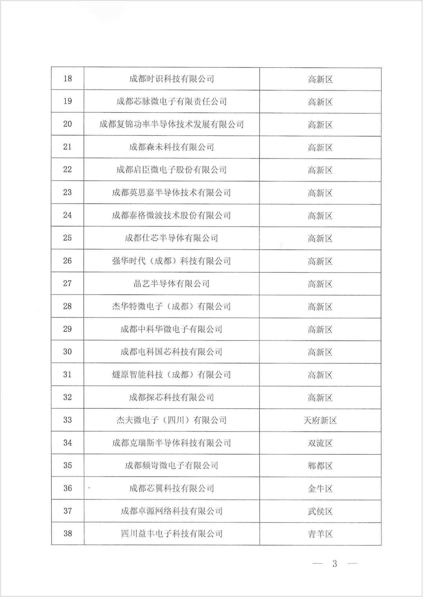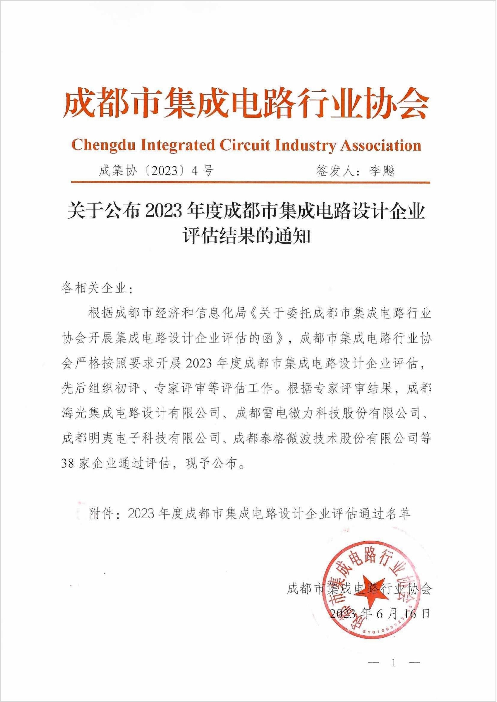 关于公布2023年度成都市集成电路设计企业评估结果的通知