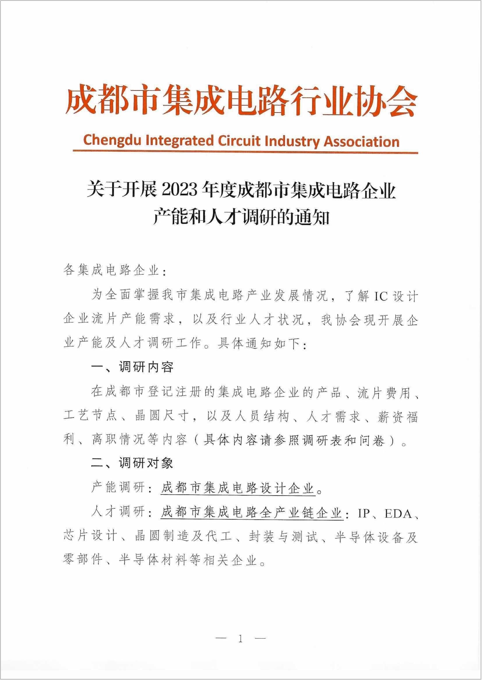 关于开展2023年度成都市集成电路企业产能和人才调研的通知