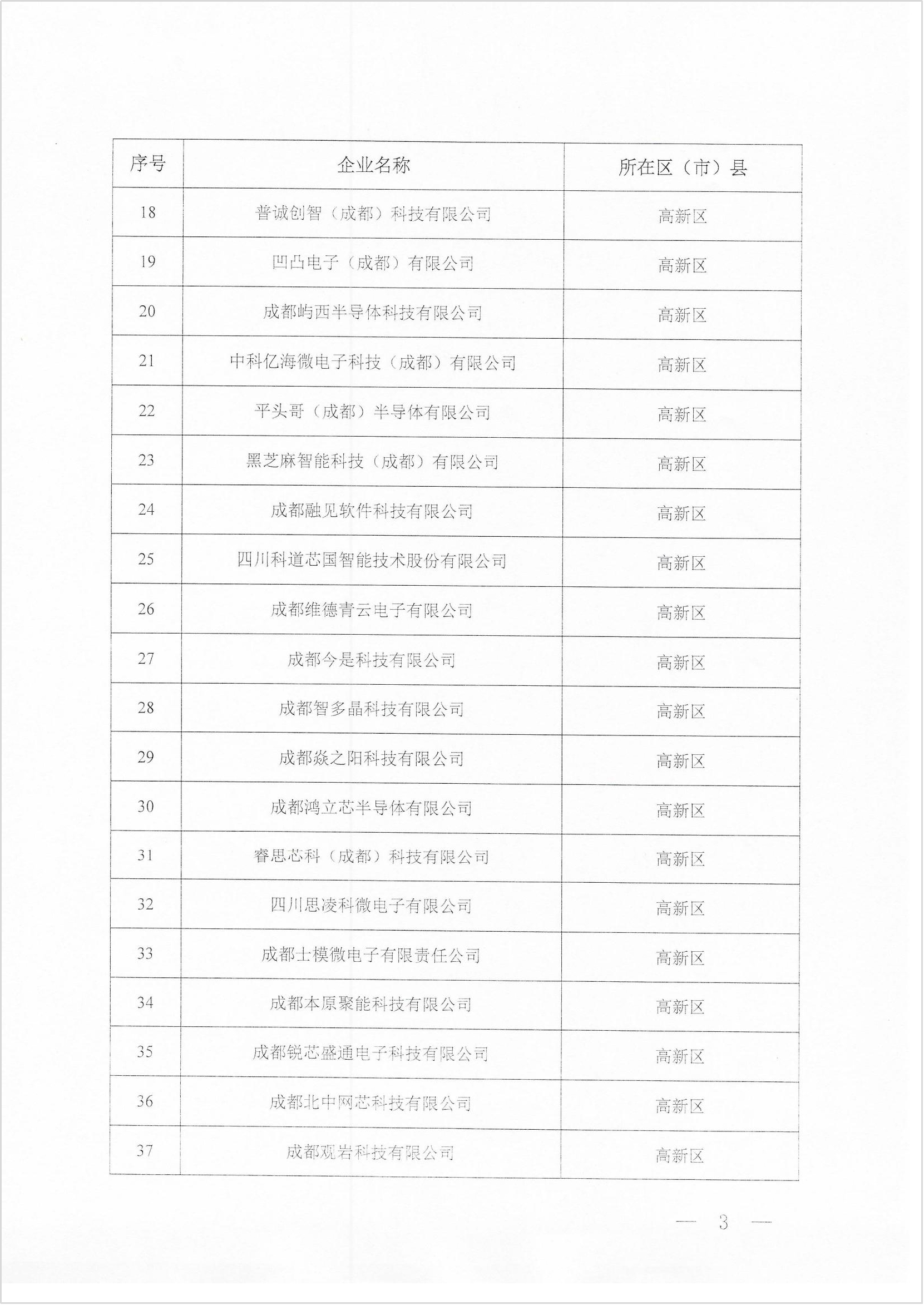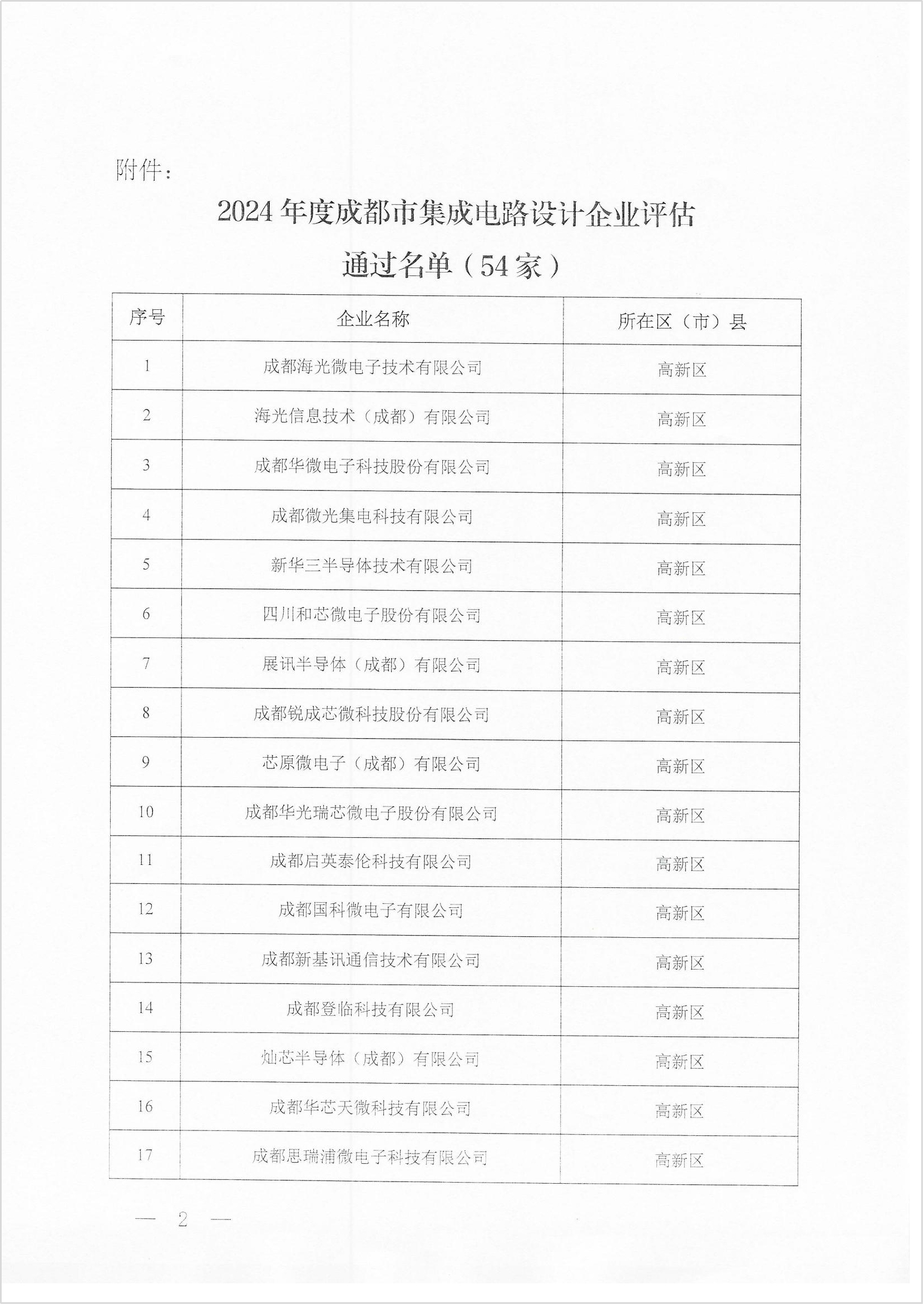 关于公布2024年度成都市集成电路设计企业评估结果的通知